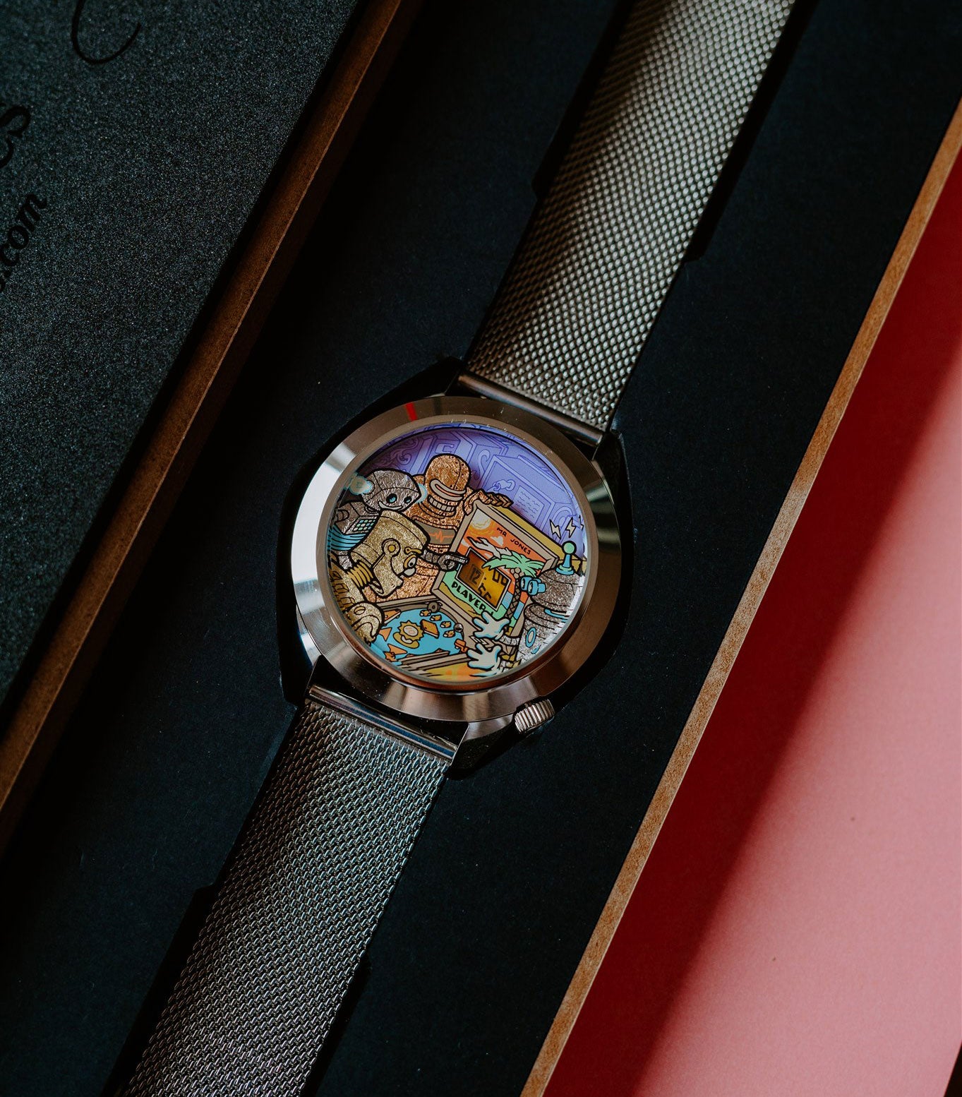 This watch has a jump hour movement, so you'll need to watch closely to see the hour change - blink and you'll miss it!