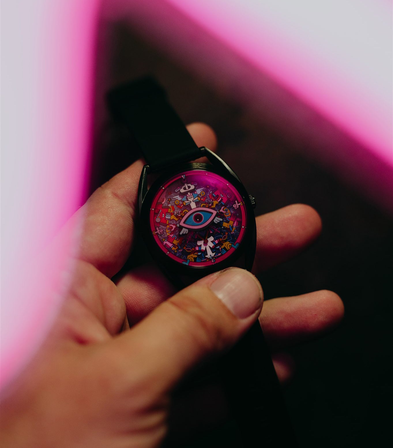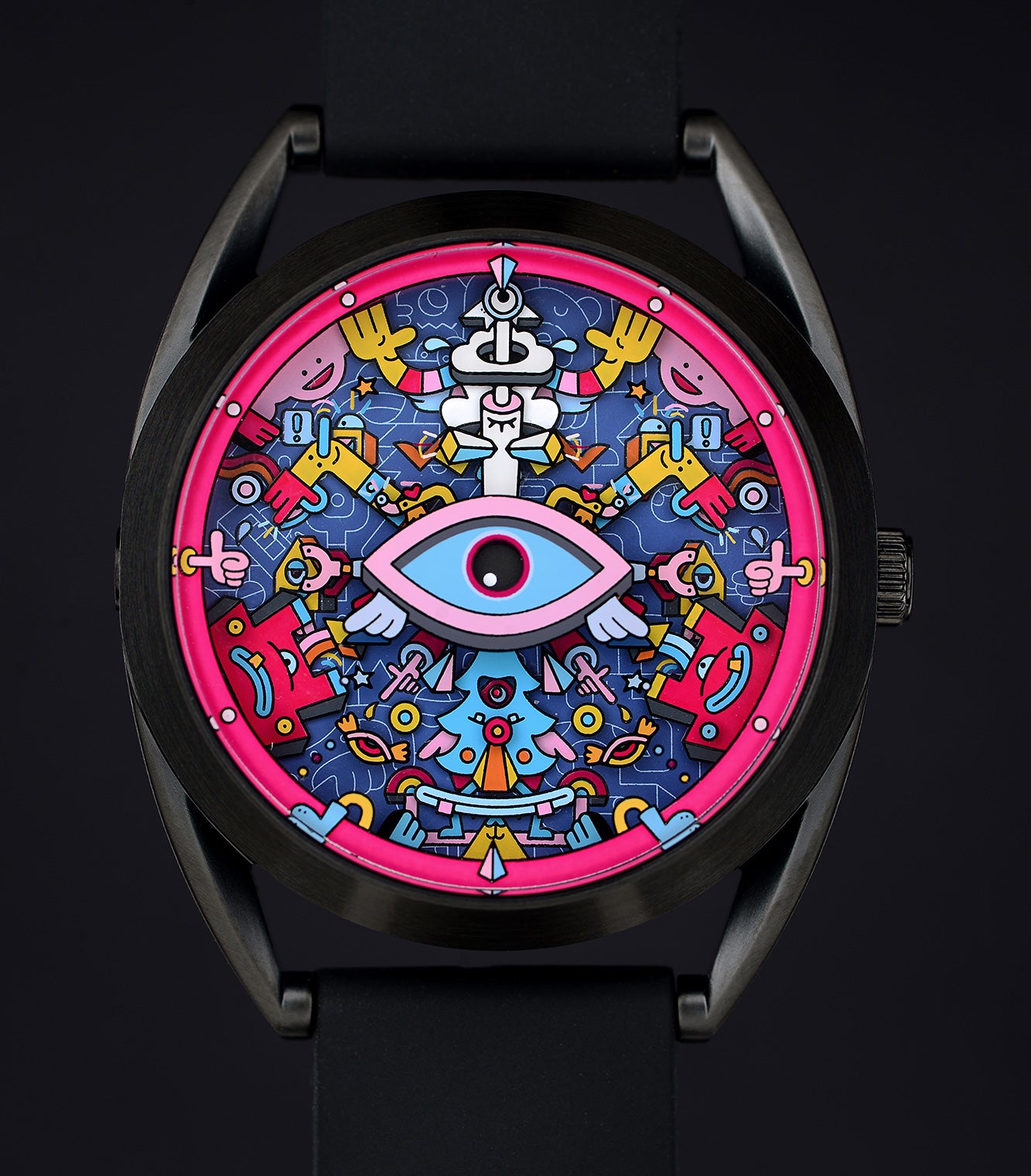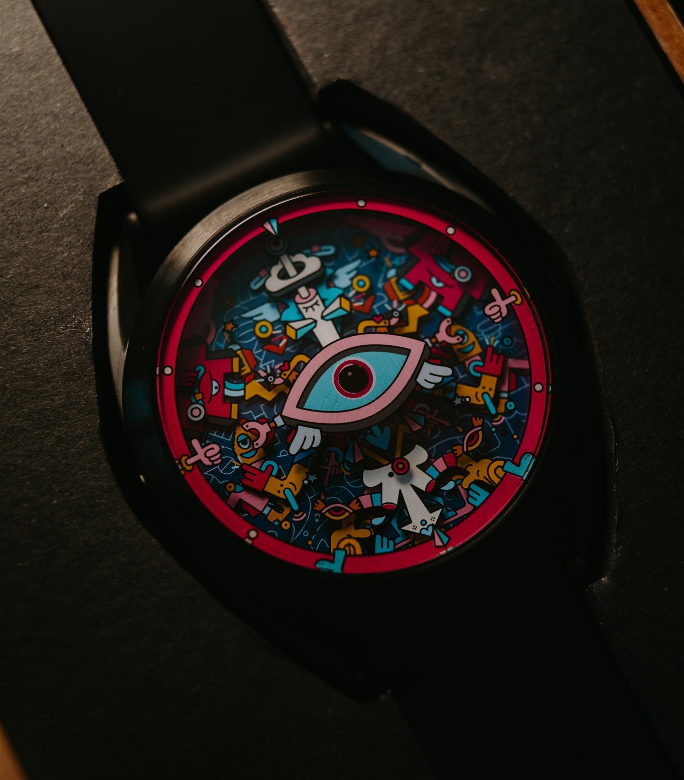 Chaotic and colourful, this watch was designed by creative illustrator Mister Phil.